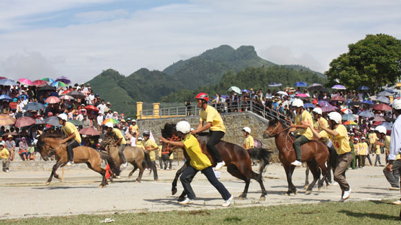 (VOVworld) – การแข่งม้าที่อำเภอบั๊กห่า จังหวัดหล่าวกาย ภาคตะวันตกเฉียงเหนือของเวียดนามมีอายุประมาณ ๑๐๐ ปี ซึ่งจะมีขึ้นทุกๆเดือนมิถุนายน โดยผู้แข่งเป็นชาวบ้าน ส่วนม้าที่แข่งก็เป็นม้าขนส่งสินค้าของชาวบ้าน สิ่งที่ที่น่าประทับใจในการแข่งม้าบั๊กห่าคือ ผู้แข่งไม่ใช้อานม้าและโกลน หากบังคับม้าด้วยสายบังเหียนและเหล็กผ่าปากม้าเท่านั้น และเมื่อต้องการให้ม้าวิ่งเร็วขึ้นผู้ขี่จะบังคับม่้้าด้วยสายบังเหียน และขาทั้งสองบีบท้องม้าอย่างสนิท ทั้งนี้แสดงให้เห็นถึงความกล้าหาญของบรรดาผู้แข่ง