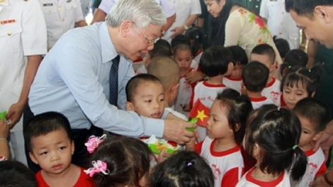 ภาพที่ซาบซึ้งตราตรึงใจของท่านเลขาธิการใหญ่พรรคเหงวียนฟู้จ่องกับทหารและประชาชนทั่วประเทศ