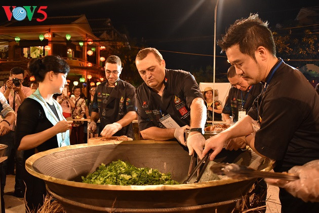 พ่อครัวต่างชาติ 10 คนเข้าร่วมการแข่งขันปรุง “กาวเหล่า” ที่เป็นอาหารจานเด็ดของเมืองเก่าฮอยอัน จังหวัดกว๋างนาม |