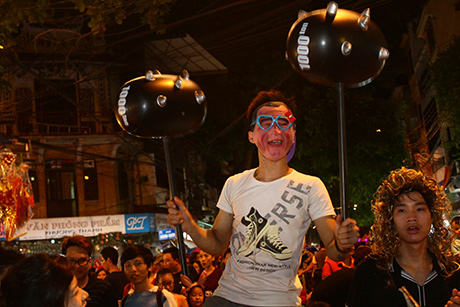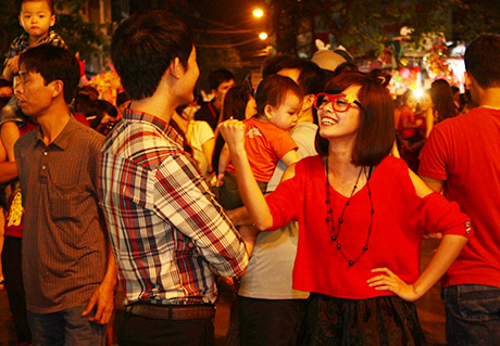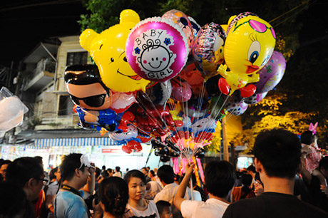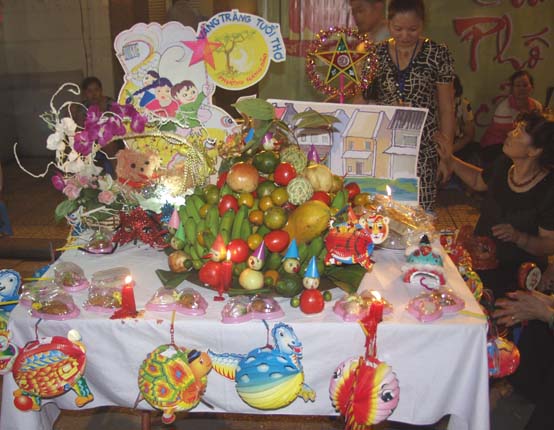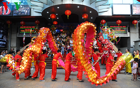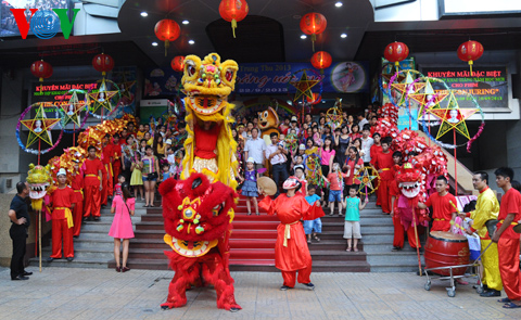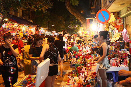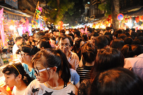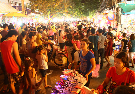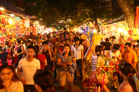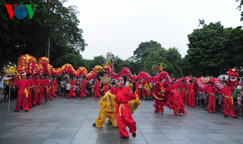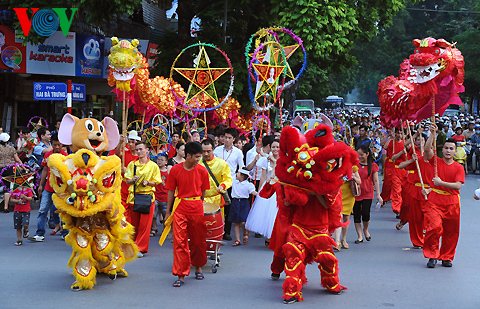 (VOVWorld)-ในคืนวันสาร์ทไหว้พระจันทร์ชาวฮานอยไม่ว่าจะเป็นหนุ่มสาวหรือเด็กรวมทั้งผู้ปกครองได้หลั่งไหลพากันมาที่ย่านโบราณ36สายในกรุงฮานอย เพราะนอกจากเป็นย่านขายของเล่นวันสาร์ทแล้ว ที่นี่ยังเป็นสถานที่จัดกิจกรรมฉลองต่างๆอย่างคึกคัก มีทั้งการเชิดสิงโต การแห่งโคมไฟ การประกวดจัดถาดขนมนมเนยและผลไม้เพื่อฉลองวันสาร์ทระหว่างแขวงต่างๆรวมไปถึงการร้องรำทำเพลง สร้างบรรยากาศที่สนุกสนานรื่นเริงให้แก่ผู้เข้าร่วมทุกคน