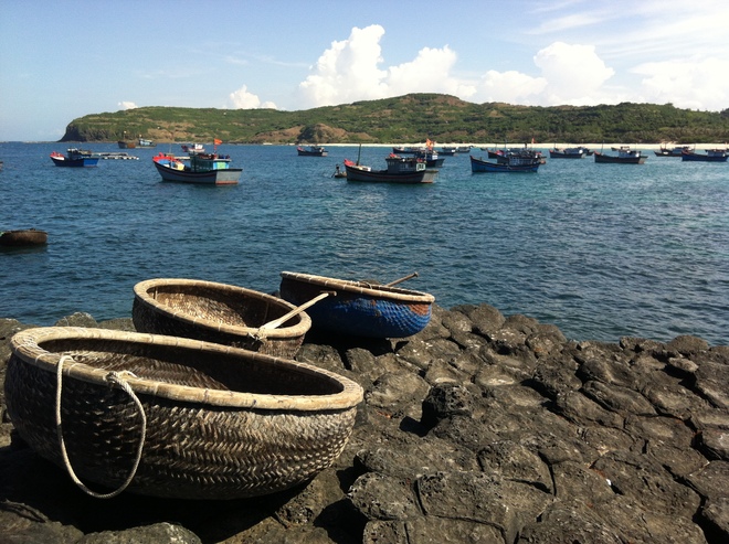 | เมื่อเดินทางเข้าใกล้ หมู่เสาหิน Ghenh Da Dia ดูเหมือนชามขนาดใหญ่ที่ทับซ้อนกัน |