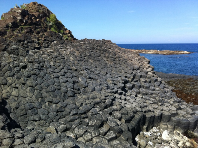ความตื่นตาตื่นใจของนักท่องเที่ยวเมื่อมาถึง Ghenh Da Dia คือภาพของหมู่เสาหินธรรมชาติที่มีลักษณะคล้ายๆกับ เดอะไจแอนท์ คอสเวย์ -The Giant’s Causeway ในไอร์แลนด์เหนือ โดยมีเสาหินขนาดมหึมาที่มีลักษณะ6เหลี่ยมหลายหมื่นต้นยื่นขึ้นมาจากทะเลโดยเสาหินยักษ์เหล่านี้ได้เกิดขึ้นซ้อนๆกัน เหมือนการเอาจิ๊กซอว์ยักษ์มาต่อกันเป็นชั้นๆมีรูปร่างคล้ายกับรังผึ้งขนาดยักษ์ และก็มีเสาหินกลมๆหน้าเรียบเหมือนชามขนาดใหญ่ที่ทับซ้อนกันจนชาวบ้านได้ตั้งชื่อว่า Ghenh Da Dia