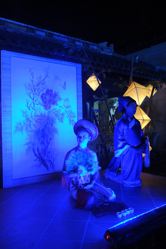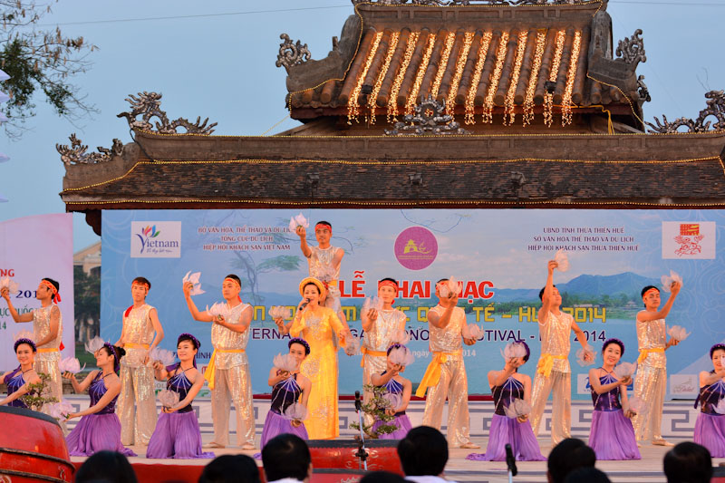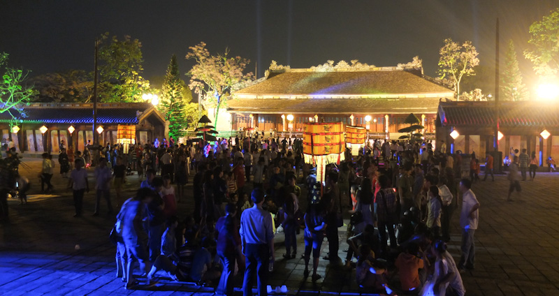 นักท่องเที่ยวไม่เพียงแต่ได้ชมความสวยงามของพระราชวังในยามค่ำคืนเท่านั้น หากยังได้ฟังและชมการเล่นดนตรีชาววังเว้และการแสดงพิธีรับอาคันตุกะของพระชนนีและพิธีสมรสของเจ้าหญิงในอดีต