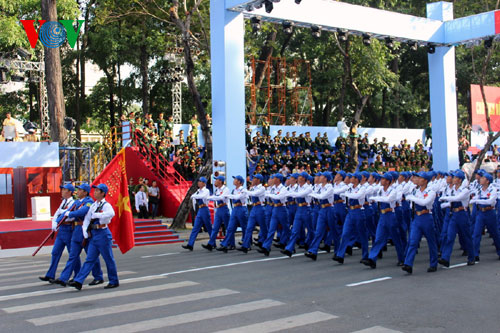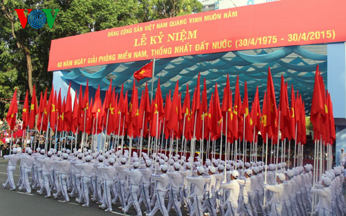(VOVWorld)-– เช้าวันที่ ๒๖เมษายน คณะกรรมการจัดวันงานสำคัญฯระดับชาติได้จัดพิธีซ้อมใหญ่การชุมนุมและเดินสวนสนามในโอกาสฉลองครอบรอบ๔๐ปีวันปลดปล่อยภาคใต้และรวมประเทศเป็นเอกภาพที่จะมีขึ้น ณ จัตุรัสโธ๊งเยิตหรือเอกภาพ เช่น การเดินขบวนสำแดงกำลังและการเดินพาเหรดของกองกำลังต่างๆสังกัดกระทรวงกลาโหม กระทรวงรักษาความมั่นคงภายใน แนวร่วมปิตุภูมิ คณะ องค์การและนครโฮจิมินห์พร้อมการแสดงให้เห็นถึงเอกลักษณ์ของประชาชาติ จิตใจแห่งชัยชนะ ๓๐ เมษายนแห่งประวัติศาสตร์ ความความหวังเกี่ยวกับสันติภาพและเอกราชของประชาชาติเวียดนาม คาดว่า พิธีชุมนุมจะมีขึ้นอย่างเป็นทางการในเวลา ๖.๓๐น.ของวันที่ ๓๐เมษายน