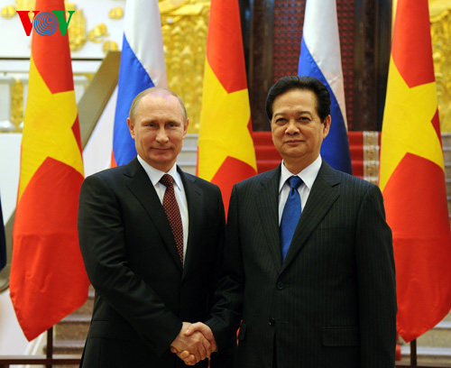 | นายรัฐมนตรีเวียดนามเหงียนเติ๊นหยุงให้การต้อนรับประธานาธิบดี วลาดีเมียร์ปูติน |