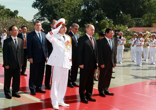 | ประธานาธิบดีรัสเซียได้ไปวางพวงมาลาและเคารพศพประธานโฮจิมินห์ ณ หอเก็บศพ |