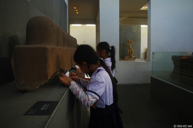 ![]() ผลงานศิลปะ แต่ละชิ้นที่จัดแสดง ณ พิพิธภัณฑ์ฯเป็นเรื่องราวหรือตำนานเกี่ยวกับวัฒนธรรมของชาวจามที่ยังคงความสวยงามและความประณีตของงานแกะสลัก การปั้นและหล่อที่แม้จะถูกผลกระทบจากกาลเวลา ธรรมชาติและฝีมือของมนุษย์ก็ตาม |