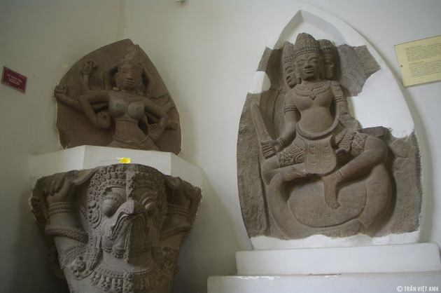 ![]() สิ่งประติมากรรมเหล่านี้ล้วนเป็นต้นฉบับที่ทำจากวัตถุดิบหลักคือ หินทราย ดินเผาและทองสัมฤทธิ์ในแนวศิลปะการแกะสลักสามมิติที่หลากหลายตั้งแต่ศตวรรษ ที่ ๗-๑๕ |