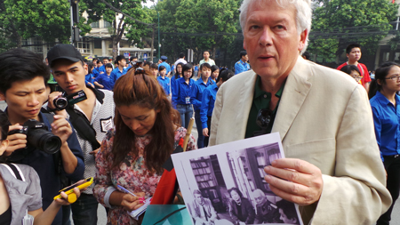 | ประชาชนจำนวนมากได้รวมตัวกันในบริเวณโดยรอบอาคารจัดพิธีศพแห่งชาติ เลข๕ ถ.เจิ่นแท้งตงเพื่อร่วมพิธี |