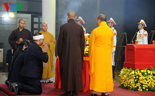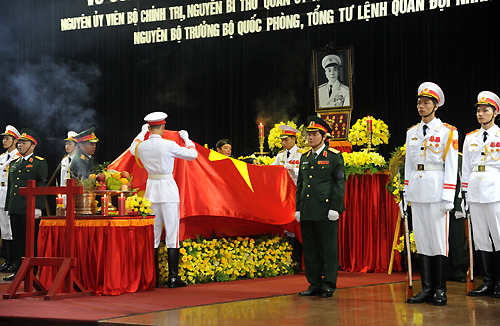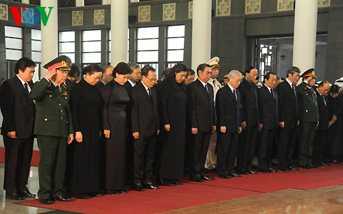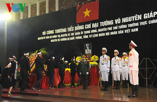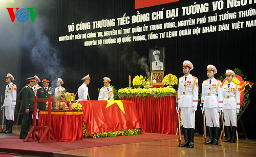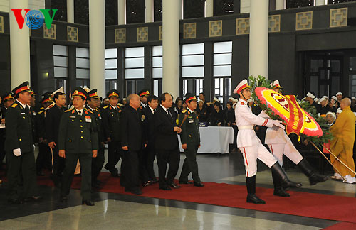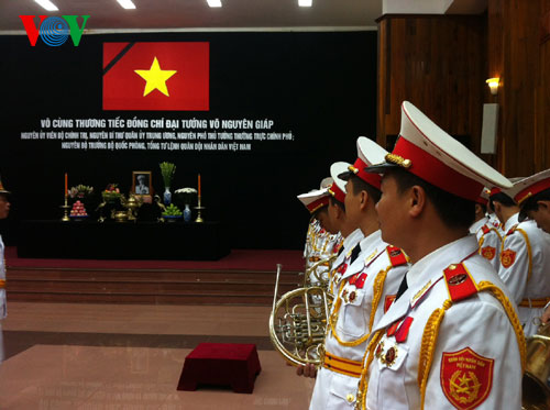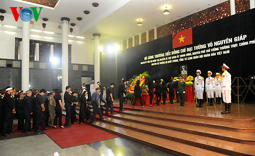 (VOVWorld)-พิธีไว้อาลัยพลเอกหวอเหงียนย้าปได้เริ่มขึ้นตั้งแต่เวลา๗.๓๐นวันที่๑๒ตุลาคมซึ่งนอกจากคณะผู้แทนของพรรค รัฐ รัฐสภาและรัฐบาลแล้วยังมีคณะทูตานุทูต คณะผู้แทนองค์กรต่างประเทศและประชาชนจำนวนมากได้มาร่วมพิธีที่อาคารจัดพิธีศพแห่งชาติ ณ เลขที่๕ ถ.เจิ่นแท้งตง เพื่อแสดงความเศร้าสลดใจและความเคารพรักอย่างสุดซึ้งต่อพลเอก หวอเงียนย้าป ผู้บัญชาการทหารที่ปรีชามารถของกองทัพเวียดนาม