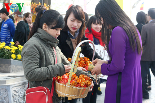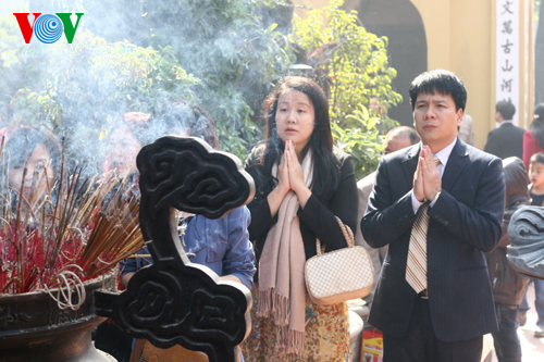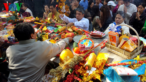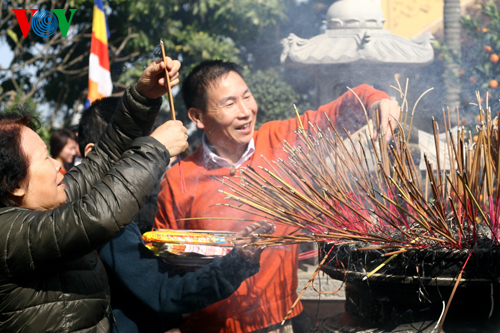 (VOVWorld)-ในวันขึ้นปีใหม่ประเพณี ชาวเวียดนามมักจะเดินทางไปทำบุญวัดเพื่อขอพรให้ครอบครัวมีสุขภาพแข็งแรงและความสงบสุข ขอให้ทุกคนมีชีวิตความเป็นอยู่ให้มั่นคงและลูกหลานประสบความสำเร็จในหน้าที่การงาน นี่ถือเป็นเอกลักษณ์ในชีวิตจิตใจของคนเวียดนาม