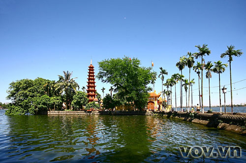 | วีดเจิ๊นก๊วก ซึ่งเป็นวัดที่เก่าแก่ที่สุดของฮานอย ซึ่งตั้งอยู่ริมฝั่งทะเลสาบHồ Tây หรือทะเลสาบตะวันตก |