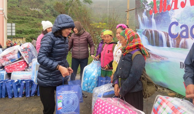นางเหงียนถิทวี๊ลาน รองผ.อ.วีโอวี 5 มอบสิ่งของให้แก่ชนกลุ่มน้อย