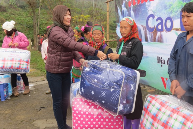 (VOVworld) – จากจิตใจแห่งการให้ความช่วยเหลือจุนเจือกันและแบ่งเบาความยากลำบากความขาดแคลนให้แก่ชนกลุ่มน้อยในเขตเขาสูง เมื่อวันที่ 14 และ 15 มกราคม คณะเจ้าหน้าที่ผู้สื่อข่าวของส่วนกระจายเสียงต่างประเทศแห่งสถานีวิทยุเวียดนามหรือวีโอวี 5 ได้ลงพื้นที่มอบสิ่งของจำเป็นรวมมูลค่า 90 ล้านด่ง ซึ่งประกอบด้วย ผ้าห่มกันหนาว ผ้าพันคอพรม เสื้อกันหนาว อุปกรณ์การเรียน น้ำมันพืช ผงชูรส เกลือและน้ำตาล เป็นต้น ให้แก่นักเรียนและครอบครัวจนกลุ่มน้อยยากจนในตำบลเกิ่นนง อำเภอทงนง จังหวัดกาวบั่ง
