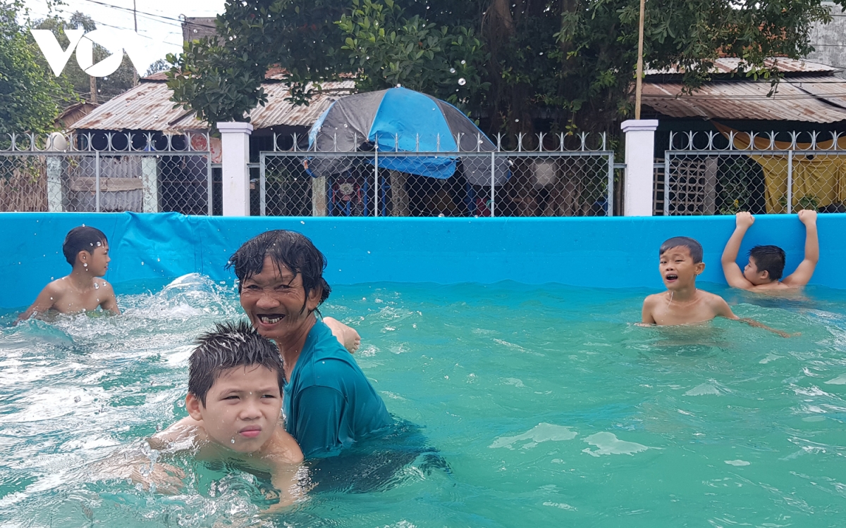 นาง เจิ่นถิกีมเทีย อายุ 63 ปี ที่ตำบลฮึงแถง อำเภอท๊าปเหมื่อย จังหวัดด่งท๊าปได้สอนว่ายน้ำให้แก่เด็ก 3800 คน