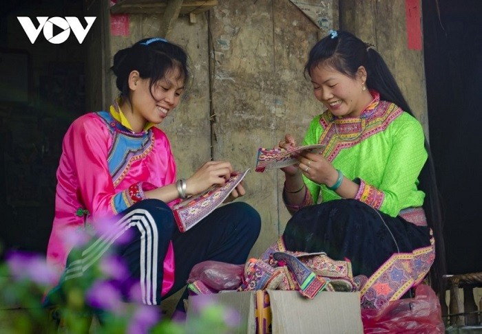 คุณ อว่าง วู เซวี๊ยน และสตรีคนอื่นๆในหมู่บ้าน ต๋าสิ่นถ่าง มักขมักเขม้นกับงานเย็บปักถักร้อยเพื่อสร้างสรรค์ผลงานตามอารมณ์ทั้งชุดเสื้อผ้าและรองเท้าผ้าด้วยสีฉูดฉาดที่สะท้อนเอกลักษณ์วัฒนธรรมพื้นบ้าน "ฉันกำลังเย็บเสื้อในชุดพื้นเมือง เฉพาะส่วนปักลายต้องใช้เวลาประมาณ10 วัน นี่เป็นเสื้อของผู้หญิง จึงปักลายดอกสีชมพู สีฟ้าและสีขาว ส่วนเสื้อผู้ชายมีแค่สองสีขาวดำ "