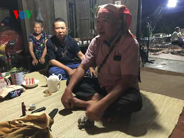 ในระหว่างการทำพิธี หมอแทนร้องเพลงอย่างต่อเนื่องเพื่อเป็นการขับไล่สิ่งที่ไม่ดีออกจากบ้านให้หมดและอวยพรให้ครอบครัวโชคดีมีสุขในขณะที่คนในบ้านจะเผากระดาษเงินกระดาษทองเพื่อถวายเทพทั้งหลายพร้อมขอให้สิ่งศักดิ์สิทธิ์ต่างๆคอยปกป้องคุ้มครองทุกคนในครอบครัวคลาดแคล้วจากภัยร้าย ในถาดเครื่องเซ่นไหว้นั้นมักจะมีการปักกิ่งท้อเพื่อเป็นการไล่ผีตามความเชื่อของชาวหนุ่ง โดยสำหรับวิธีการไล่ผีนั้นถ้าหากชนเผ่าอื่นอาจจะใช้วิธีกระโดดข้ามกองไฟหลายรอบ ชาวหนุ่งจะบีบใบท้อในกำมือ หลังจากเสร็จพิธีก็จะเอาข้าวสารไปโรยที่ลานหน้าบ้านเพื่อขับไล่สิ่งชั่วร้ายต่างๆให้ออกไปและขอให้สิ่งศักดิ์สิทธิ์จากทั่วสารทิศรับทราบคำขอของครอบครัว นายวีเหวียดหยุง นักวิจัยเกี่ยวกับชนเผ่าไตและหนุ่งเผยว่า“ตามความเชื่อของชาวเผ่าหนุ่ง มนุษย์ที่เกิดมาย่อมมีเทพธิดา1องค์ดูแลดวงวิญญาณ ซึ่งต้องขอให้หมอแทนทำพิธีเรียกดวงวิญญาณมาทรงร่างเพื่อรับทราบการจัดพิธีไหว้ในโอกาสวันเกิดนี้”