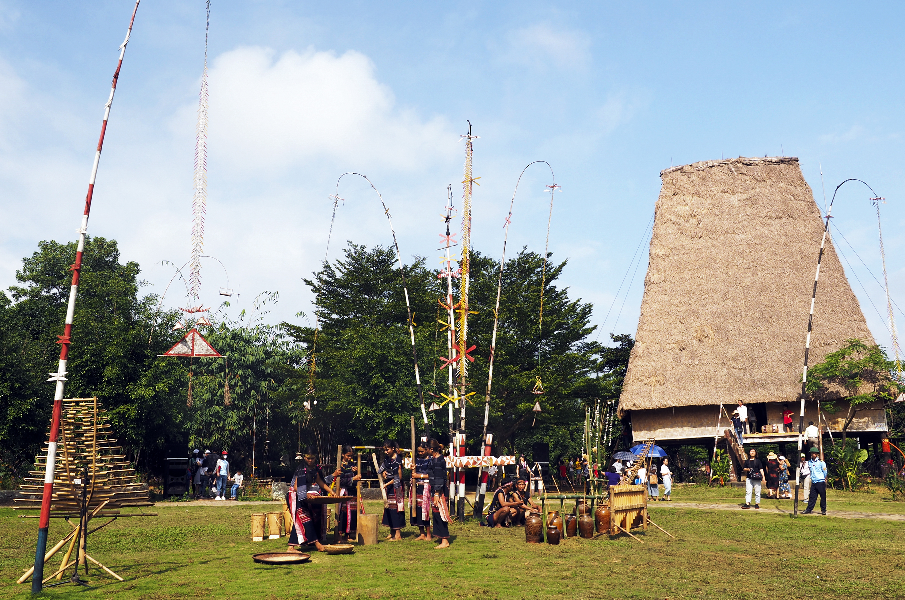 กิจกรรมวัฒนธรรมในขอบเขตชุมชนเผ่าบานามักจะจัดที่บ้านโรง(internet) |