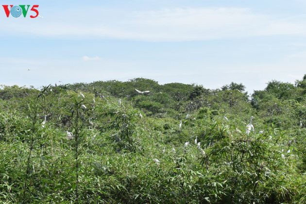 จนถึงปัจจุบัน สวนนกกระยางของนายไบ๋ก่อ มีพื้นที่กว่า1หมื่น2พัน5ร้อยตารางเมตร จำนวนนกที่มาอาศัยทำรังกว่า2แสนตัวรวมกว่า20ชนิด เช่นนกกระสาตัวเล็กที่สุดที่มีน้ำหนักแค่ 150 กรัม นกปากช้อนที่มีน้ำหนักถึง 1.2 กิโลกรัม นกกระสาปากดำที่สามารถจับปลาได้อย่างคล่องแคล่ว นกกระยาง นกกระสาปากเหลือง นกยางเขียว นกยางไฟ เป็นต้น ช่วงเวลาที่ถือว่าสวยที่สุดเพื่อชมสวนนกคือ6-7โมงเช้าตอนนกออกหากินหรือช่วง5โมงเย็นเมื่อนกบินกลับรังสัมผัสกับบรรยากาศสุดพิเศษท่ามกลางเสียงร้องของนกกระสากระยางจำนวนมากที่เกาะอยู่บนยอดไม้ หรือกำลังบินกลับรังเป็นกลุ่มรูปตัววีแล้วลงมาเกาะเต็มกิ่งไม้
