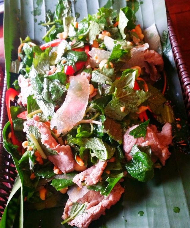 อันดับแรกเรามาดูกันว่าชนกลุ่มน้อยเผ่าไทที่จังหวัด เซินลา นั้นมีเมนูอาหารพื้นเมืองอะไรที่ขึ้นชื่อนะคะ โดยเขตที่ราบสูงโหมกโจว์ จังหวัดเซินลาเป็นถิ่นอาศัยของชนเผ่าไท ซึ่งไม่เพียงแต่ขึ้นชื่อว่าเป็นถิ่นดอกไม้ป่าที่สวยงามหลายสายพันธุ์พร้อมอากาศบริสุทธิ์ปลอดโปร่งเท่านั้นหากยังดึงดูดความสนใจของนักท่องเที่ยวด้วยอาหารพื้นเมืองหลายอย่างโดยเฉพาะ หนังควายหมักเค็มเปรี้ยว ซึ่งตามคำแนะนำของชาวเผ่าไทในท้อนถิ่นวิธีการทำเมนูนี้มีความสำคัญมากกว่าจะได้หนังควายหมักเปรี้ยวที่อร่อยไม่แข็งไม่เหนียวมากเกินไป นาย ต่องวันเอียน จากหมู่บ้าน ป๋าง ต.เจี่ยงแดน นครเซินลาเผยว่า“หนังควายหั่นเป็นชิ้นเท่าฝ่ามือ แช่น้ำร้อนล้างให้สะอาด หลังจากนั้นก็เอาไปย่างบนเตาถ่านจนหอมแล้วก็นำไปล้างอีกรอบ ล้างเสร็จก็ต้มน้ำอีกทีให้นิ่มพอดี”