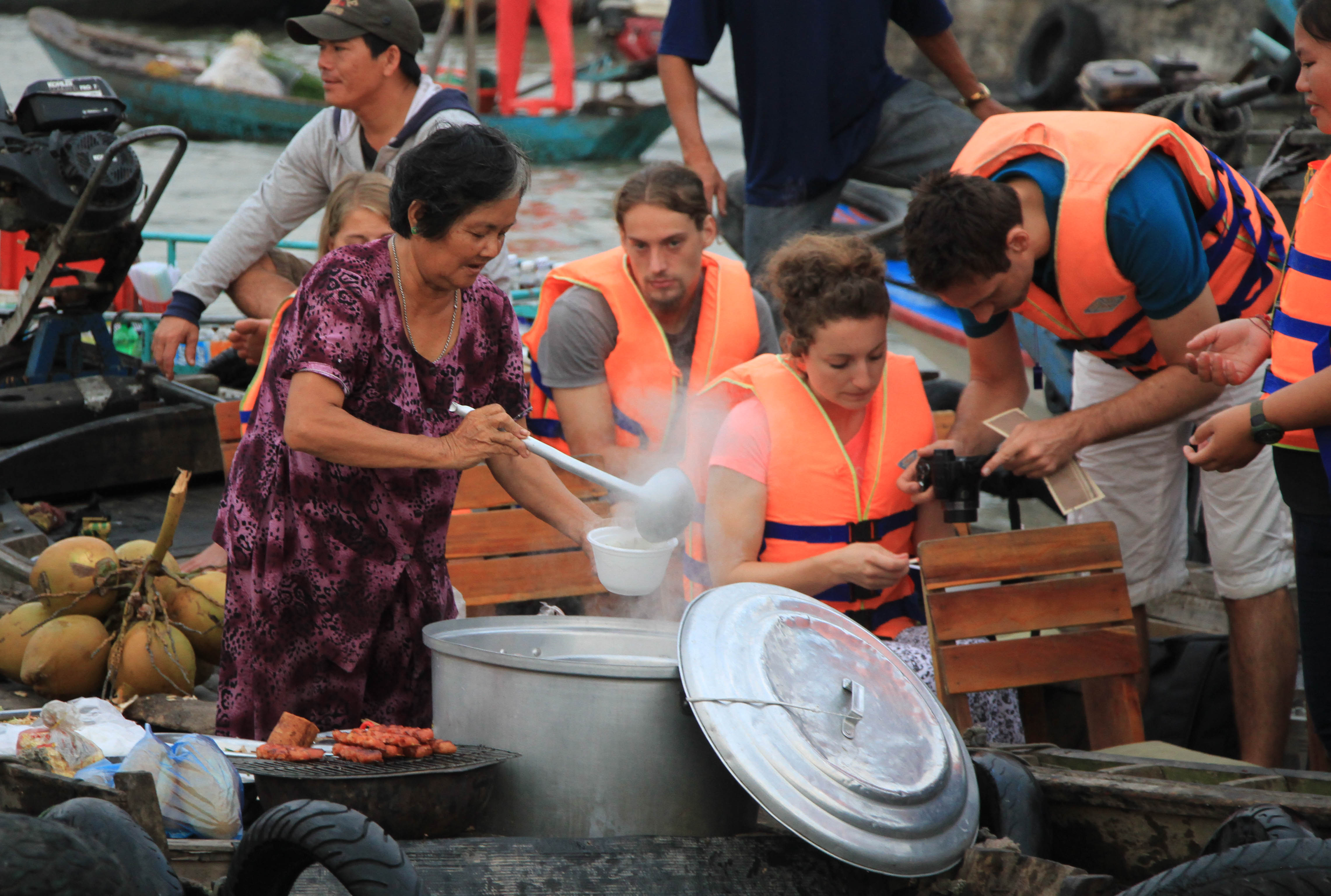 นักท่องเที่ยวต่างชาติชื่นชอบการลิ้มลองอาหารพื้นเมืองบนเรือ |