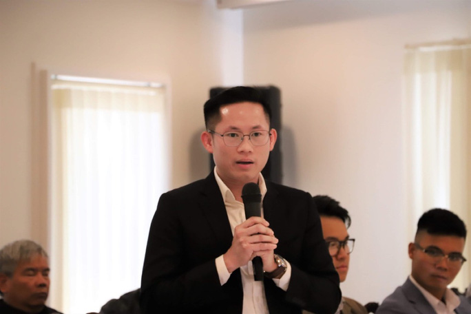 นาย เหงียนห่งยวี แนะนำผลิตพันธ์ช็อคโกแลตต่อเยาวชนรุ่มใหม่ในงานสตาร์ทอัพ (หนังสือพิมพ์เญินเซิน) |