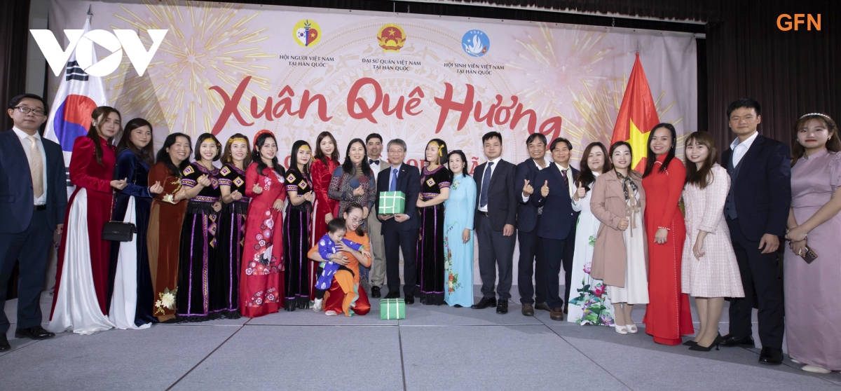 วันที่ 17 ธันวาคมของปีเสือ ในกรุงโซล ประเทศสาธารณรัฐเกาหลี ตรงกันข้ามกับอากาศหนาวจัดข้างนอก บรรยากาศในห้องประชุมของโรงแรมโซลการ์เดนกลับมีความอบอุ่นเป็นพิเศษเพราะที่นี่กำลังจัดรายการ “ตรุษเต๊ตแห่งบ้านเกิด” เพื่อต้อนรับตรุษเต๊ตปีแมวตามจันทรคติของชุมชนชาวเวียดนามในสาธารณรัฐเกาหลี และบรรยากาศก็มีความอบอุ่นมากขึ้นเมื่อเพื่อนร่วมชาติเป็นจำนวนมากได้พบกันหลังจากต้องห่างเหินกันมานานกว่า 2 ปีเนื่องจากการระบาดของโควิด-19 "วิเศษมาก" คือประโยคที่สะท้อนความหมายของรายการพบปะ“ตรุษเต๊ตแห่งบ้านเกิด” ของชุมชนชาวเวียดนามในสาธารณรัฐเกาหลี โดยภาพลักษณ์ของตรุษเต๊ตที่สะท้อนจากภาพของกิ่งดอกท้อ ดอกเหมยและอาหารเวียดนาม เช่น แบ๊งจึง ปอเปี๊ยะทอด หมูยอ เป็นต้น ได้ช่วยให้ผู้คนได้สัมผัสบรรยากาศตรุษเต๊ตเวียดนามในใจกลางกรุงโซล คุณ Vo Thi Ngoc Tuyet เผยว่า “ทุกครั้งที่เข้าร่วมงานฉลองปีใหม่ประเพณีนี้ เราก็รู้สึกเหมือนได้กลับบ้านเกิดและภูมิใจในวัฒนธรรมเวียดนาม ตรุษเต๊ตเวียดนามคึกคักอบอุ่นมากไม่เหมือนเต๊ตของเกาหลี”