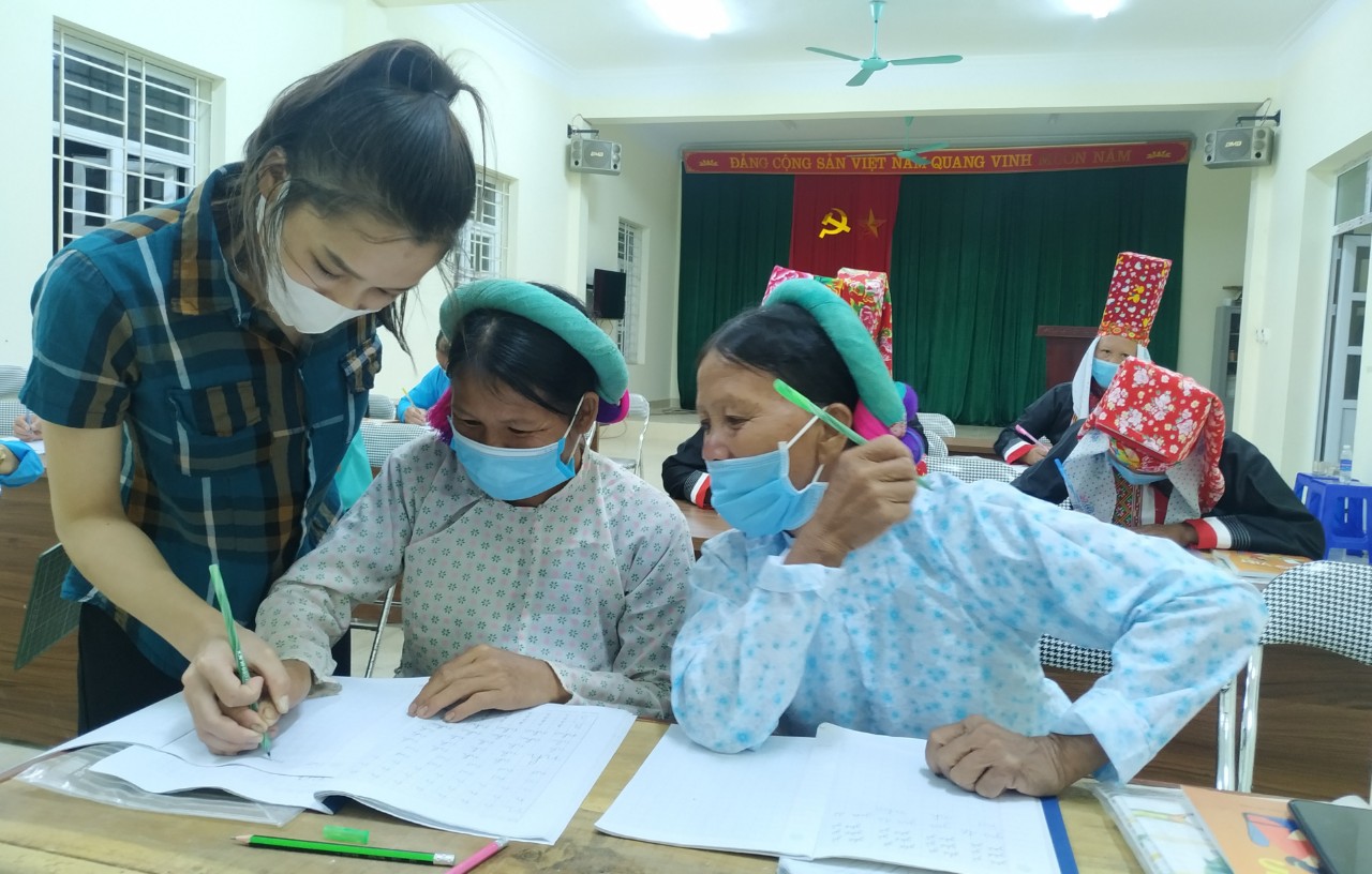 “ชาวบ้านที่เข้าร่วมชั้นเรียนส่วนใหญ่สามารถอ่านออกเขียนได้ บางคนอยากยกระดับความรู้และเรียนรู้เทคนิคการเพาะปลูกและปศุสัตว์ ซึ่งการเรียนภาษาเวียดนามก็ถือว่ายากแล้วแต่การเรียนวิชาอื่นๆยากยิ่งกว่า พวกเราได้ส่งเสริมบทบาทของทางการท้องถิ่นในการรณรงค์ให้ชาวบ้านไปเรียนหนังสือ แต่เพื่อสามารถประสบความสำเร็จ ชาวบ้านก็ต้องพยายามไปเรียนหนังสือในตอนค่ำด้วย”