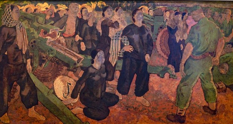ผลงานต่างๆในนิทรรศการนำเสนอภาพของภรรยาและคุณแม่ในภาคใต้ที่ต้องอำลาสามีและลูกที่เข้าร่วมกองทัพและเคลื่อนพลไปยังภาคเหนือ รวมทั้ง คุณแม่ที่ช่วยเหลือทหารในช่วงสงครามซึ่งเป็นผู้ที่อยู่เบื้องหลังที่มั่นคงให้แก่เจ้าหน้าที่ทหารที่ต่อสู้ในสมรภูมิ เช่น ผลงาน “ก้อนดินภาคใต้” ของฝ่ามซวนที ผลงาน “คุณแม่ในช่วงสงคราม”ของหว่างเจิ่มและผลงาน “หัวใจและลำกล้องปืน”ของหวิ่งวันเกิ๋ม ภาพของสาวที่เข้าร่วมหน่วยกองโจร ลำเลียงยุทธปัจจัยและยุทธภัณฑ์และต่อสู้เพื่อปกป้องปิตุภูมิ เช่น ผลงาน “หน่วยทหารบ้านหญิงงือถวี”ของหว่างเจิ่ม ผลงาน “อุโมงค์เพื่อผ่านสิ่งกีดขวางของศัตรูในเขตหวิงลิง” ของด่าวดึ๊ก ผลงาน “ลำเลียงยุทธภัณฑ์” ของเลแทงจื่อ ตลอดจนมีผลงานต่างๆที่สะท้อนความทรหดอดทน และความมุ่งมั่นตั้งใจในการสู้รบเพื่อช่วงชิงเอกราชและเสรีภาพมาให้แก่ประชาชาติ เช่น “ผืนดินของบรรพบุรุษ”ของเหงวียนหวิงเงวียม ผลงาน “ฐานทัพโยกเมี้ยวของสหรัฐ”ของเลก๊วกโหลก ผลงาน “ในระหว่างการเคลื่อนพล”ของเหงวียนแทงโจว์และผลงาน “ทหารได้เดินทางมาแล้ว”ของเลแทงจื่อ นางเจิ่นทูห่ง ชาวกรุงฮานอยได้เผยว่า“ดิฉันชอบภาพ“หัวใจและลำกล้องปืน”ของหวิ่งวันเกิ๋มมาก ภาพนี้บรรยายถึงสตรีภาคใต้ที่ใส่เสื้อบ่าบาและมีผ้าขาวม้าพาดบ่ากำลังยืนต่อหน้าทหารอเมริกาที่มีปืนใหญ่โดยไม่หวาดหวั่น ซึ่งแสดงให้เห็นถึงบรรยากาศการต่อสู้และความมุ่งมั่นตั้งใจของประชาชน”