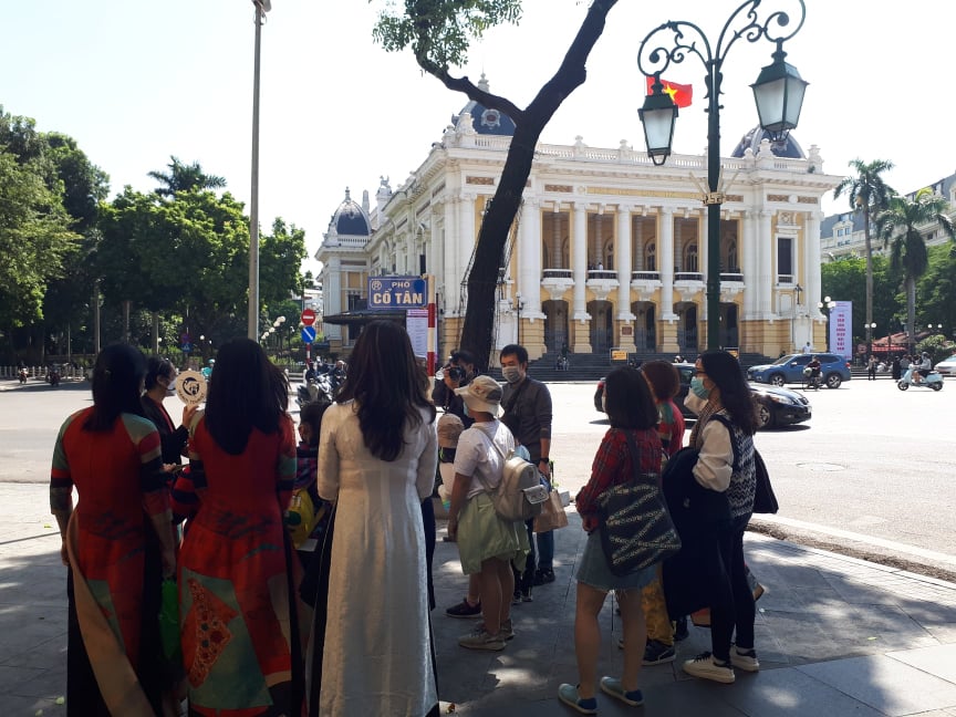 “ทัวร์เที่ยวชมสถาปัตยกรรมฝรั่งเศสในกรุงฮานอย” ใช้เวลาประมาณ 1 ชั่วโมงครึ่งซึ่งนี่ถือเป็นทัวร์แรกที่ให้บริการนักท่องเที่ยวในยุคชีวิตวิถีใหม่ โดยมมัคคุเทศก์คอยบรรยายร่วมกับระบบ audio guide เพื่อแนะนำพิพิธภัณฑ์ประวัติศาสตร์แห่งชาติ โรงละครใหญ่ฮานอยและเขตโบราณสถานบั๊กโบ่ฝู (Bắc Bộ Phủ) หรือ อาคารที่ทำการของทางการปกครองเขตภาคเหนือในช่วงสงครามต่อต้านนักล่าเมืองขึ้นฝรั่งเศส ซึ่งช่วยให้นักท่องเที่ยวมีความเข้าใจมากขึ้นเกี่ยวกับสถาปัตยกรรมและการผสมผสานด้านวัฒนธรรมของเวียดนามและตะวันตกในช่วงต้นศตวรรษที่ 20 นาง เหงวียนถิทูฮวาน รองผู้อำนวยการพิพิธภัณฑ์ประวัติศาสตร์แห่งชาติได้เผยว่า“ทัวร์ท่องเที่ยวนี้ไม่เพียงแต่ช่วยเชื่อมโยงด้านสถาปัตยกรรมเท่านั้น หากยังเชื่อมโยงด้านประวัติศาสตร์ผ่านการเที่ยวชมพิพิธภัณฑ์ประวัติศาสตร์แห่งชาติ โรงละครใหญ่ฮานอย เขตโบราณสถานบั๊กโบ่ฝู ธนาคารชาติและโรงแรม Sofitel อีกด้วย”