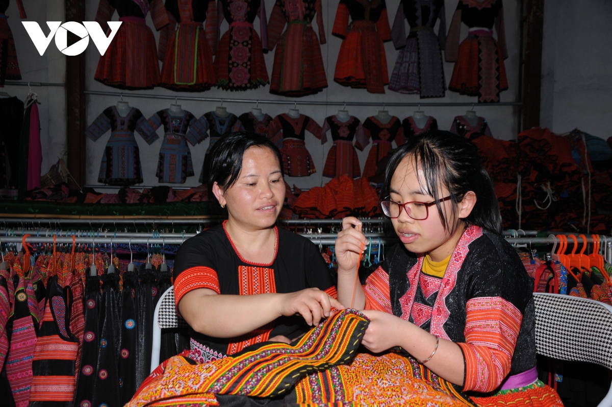 ชนเผ่าม้งในอำเภอเวินโห่ จังหวัดเซินลามีอาชีพปักผ้าและตัดเย็บเสื้อผ้าที่สืบทอดกันมาหลายชั่วอายุคน |