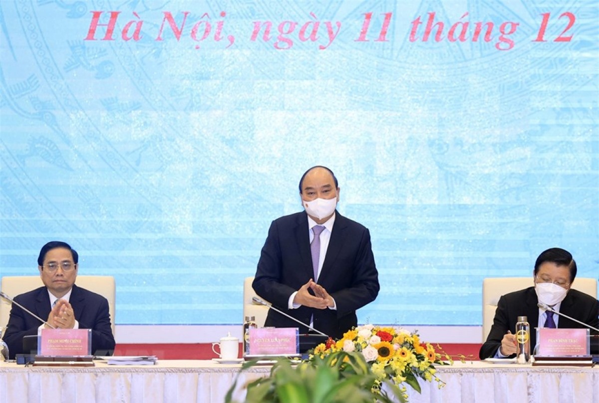 ประธานประเทศ เหงวียนซวนฟุกในการสัมมนาเชิงวิชาการ “ปัญหาทางทฤษฎีและการปฏิบัติเกี่ยวกับนิติรัฐสังคมนิยมเวียดนาม” เมื่อเดือนธันวาคมปี 2021 |