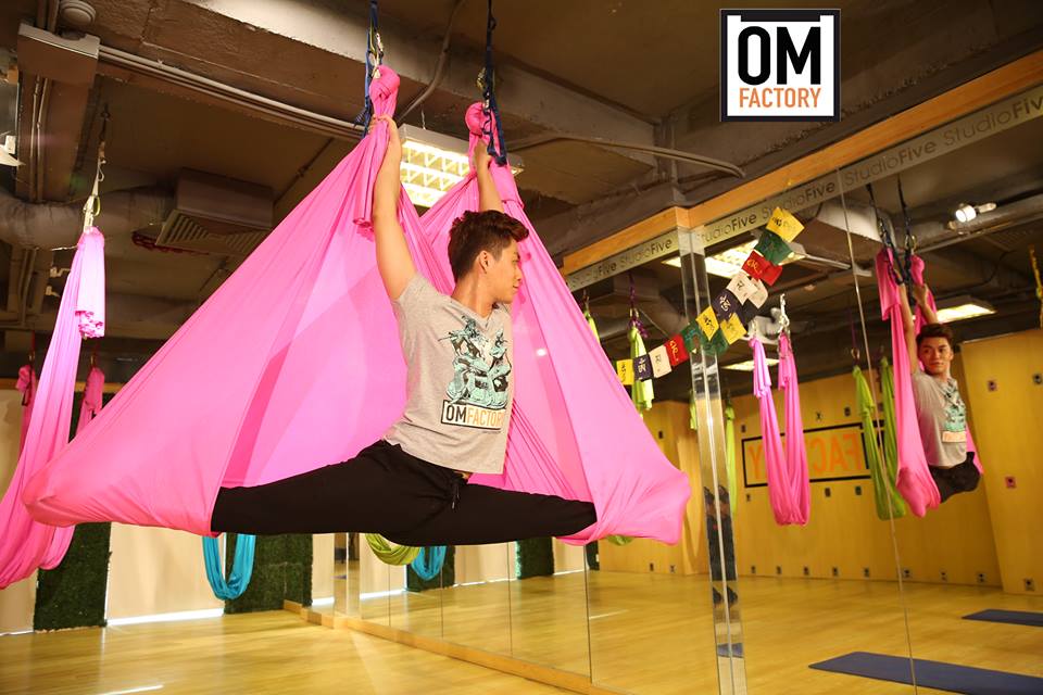 Phung added that with the hammock, Aerial Yoga learners can practice a wide range of poses from Aerial Yoga Core, Aerial Dance and Aerial Mellow Flow, the three main classes of Aerial Yoga that learners can experience at Om Factory Yoga Studio. “Aerial Yoga Core consists of traditional yoga poses, adapted with the hammock for support, and acrobatic moves, all done in the air. In Aerial Dance, students can experience a great combination of workout and choreography. They can express themselves through dancing with the help of the hammock to create beautiful inversions from yoga inspired poses. Aerial Mellow Flow is a kind of meditative Yoga practiced in the air, which is similar to restorative Yoga focusing on breathe and Zen work.”