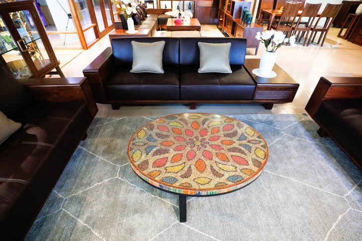 The first ever made-in-Vietnam colored pencil table made by Huong and some other designers rocked the furniture market a few years ago. Huong said, "There are numerous possibilities in combining the pencils’ 36 colors. We can make so many products using them. At first, I tried making a vase with a lot of molded pencils. It was then sculpted into a vase. The blend of colors and its wood created a stunning effect. That was the inspiration for me to make a table out of colored pencils."