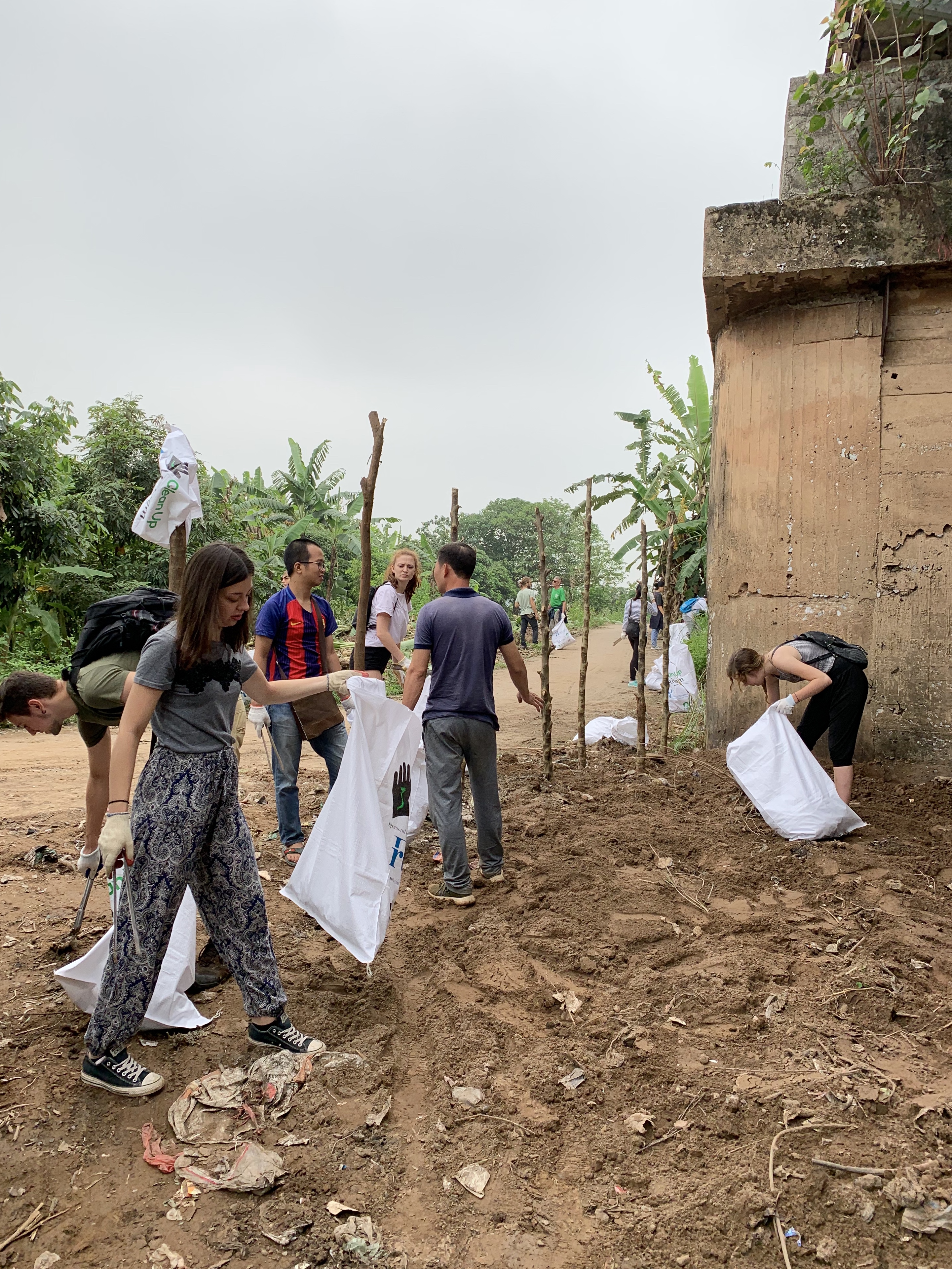The cleanup venue today is the Banana island under the Long Bien bridge. After receiving gloves, bags, and clips from organizers, people start to pick up litter along the way to the island, which is a special place for Tim. “I come running on this island almost everyday,” he said, “I love it, it’s really beautiful. But it hurts my heart to see the rubbish on the ground and all the litter. So if I can get people to pick that up, then I’m winning.”
