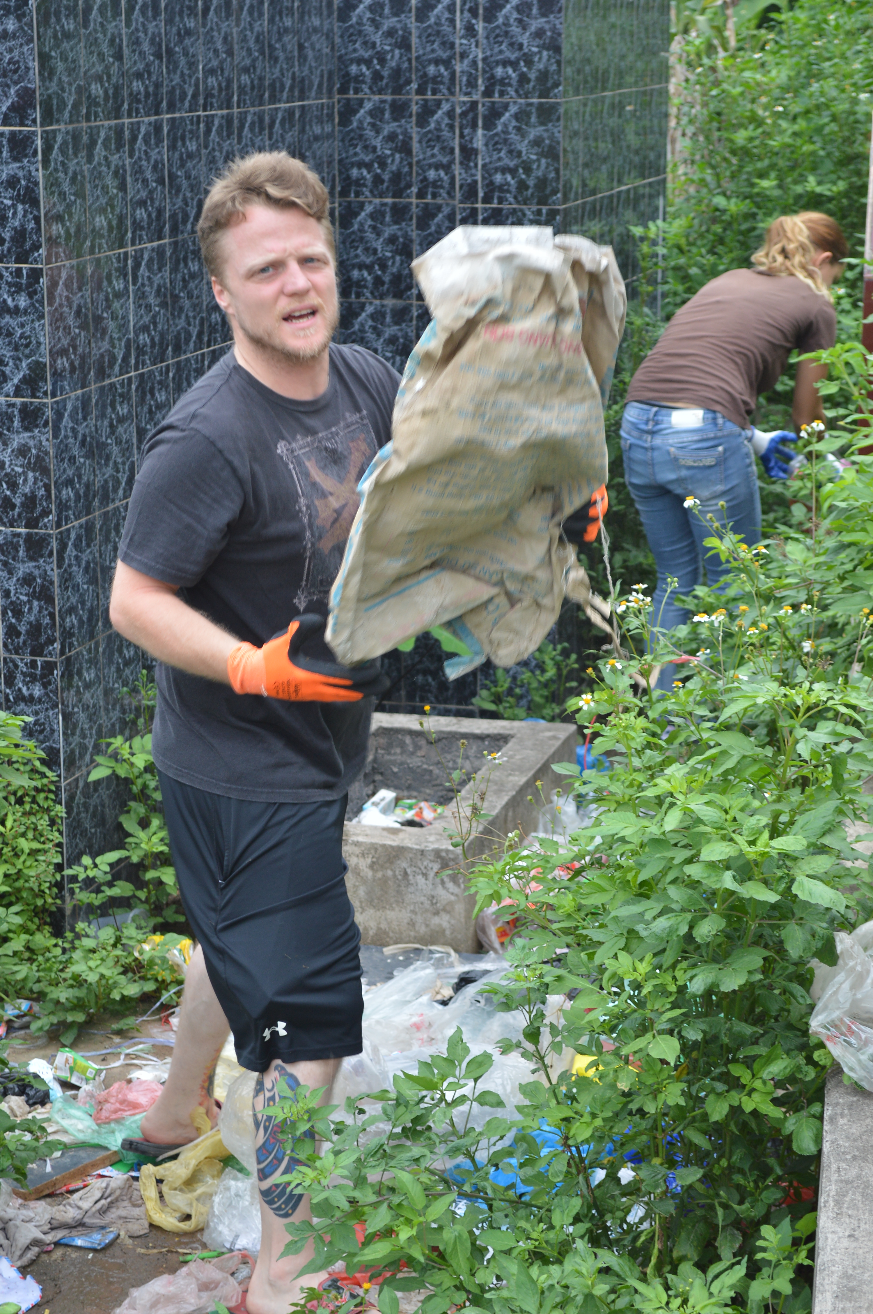 Picking up trash is always the most time-consuming part, mostly because of needles and shards of glass under the trash. (Photo: VOV5)