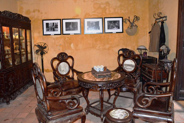 | Photos of Tet celebrations are hung on walls of the ancient house at 87 Ma May street. (Photo: thanglong.chinhphu.vn) |