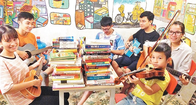 One of Binh’s free libraries is located in a small old house in an alley on Le Thanh Nghi street, Hai Ba Trung district, Hanoi. It is a collection of Binh’s old books and donations, most of which have turned yellow arranged on old bookshelves. He decorated the library with all recycled items. The library attracts many readers and visitors every day. Some come because DFree does not require any deposit to borrow books. Others enjoy reading books in a tranquil setting. Thu Huong is one the frequent visitors. She said: “When I come to the library, I can feel the fresh air and I enjoy the atmosphere there, which is perfect for reading books. The friendliness and enthusiasm of the staff here is another thing I like. They make me feel like I am at home."