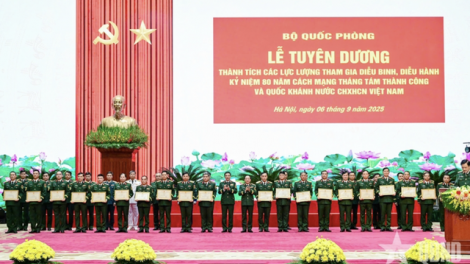 (VOV5) - Bộ Quốc phòng tuyên dương lực lượng Quân đội, Dân quân tự vệ hoàn thành xuất sắc nhiệm vụ A80, góp phần tạo nên lễ diễu binh, diễu hành 2/9 hùng tráng.