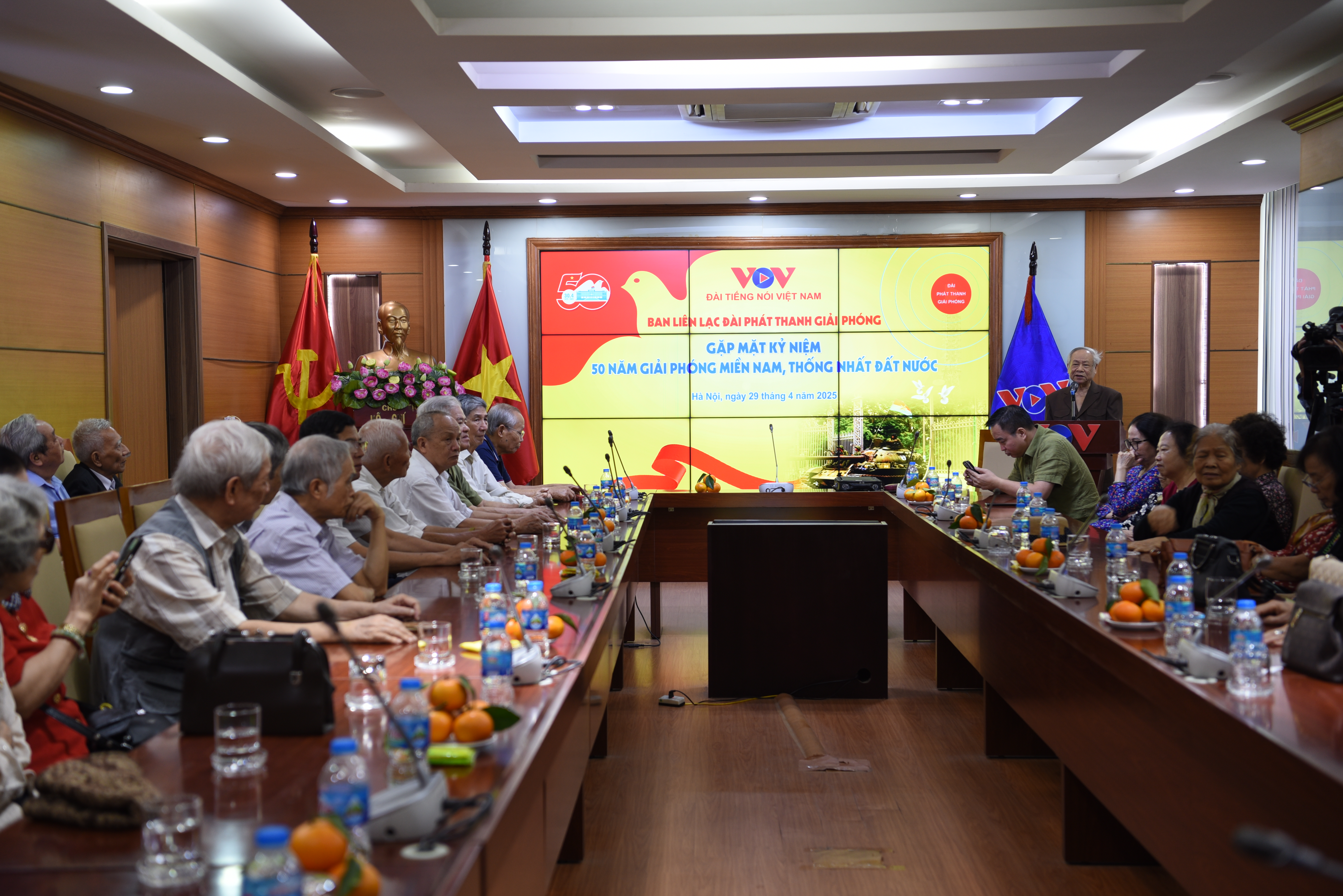 Hôm nay, tại Trung tâm Phát thanh Quốc gia, 58 Quán Sứ, Hà Nội, Đài Tiếng nói Việt Nam tổ chức buổi gặp mặt cán bộ, nhà báo, kỹ thuật viên của Đài Phát thanh giải phóng nhân dịp 50 năm giải phóng miền Nam, thống nhất đất nước (30/4/1975-30/4/2025). Phó Tổng Giám đốc Đài Tiếng nói Việt Nam Phạm Mạnh Hùng dự buổi gặp mặt.