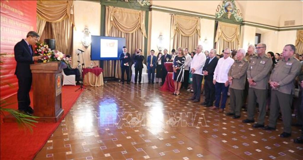 Tại thủ đô La Habana hôm qua (16/9), Đại sứ quán Việt Nam tại Cuba tổ chức Lễ kỷ niệm 80 năm Quốc khánh 2/9, với sự tham dự của hàng trăm quan khách thuộc các bộ, ngành và tổ chức của Cuba, đại diện ngoại giao đoàn, bạn bè quốc tế và cộng đồng người Việt đang sinh sống, học tập và làm việc tại nước sở tại.