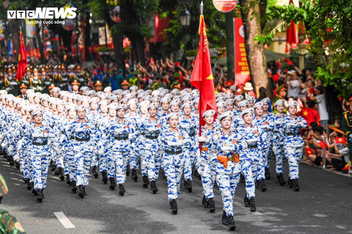 Người dân hai bên đường hò reo khi các khối diễu binh đi qua. Ảnh: VTC News |