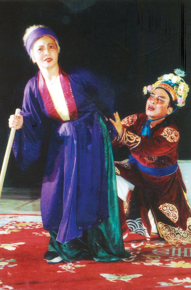 | NSND Lê Tiến Thọ và NSND Mẫn Thu trong vở tuồng "Sơn Hậu" - Ảnh tư liệu - Tạp chí Sân khấu |