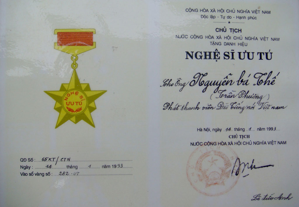 Danh hiệu NSƯT của Trần Phương |