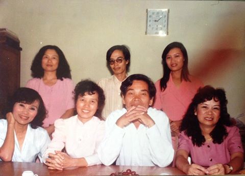 | Nhà báo Đào Xuân Tân (ngồi) cùng các đồng nghiệp phòng Việt Kiều năm 1994 |