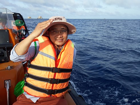 | Nhà báo Sỹ Đức trong một chuyến công tác ở Trường Sa (Ảnh do nhân vật cung cấp) |