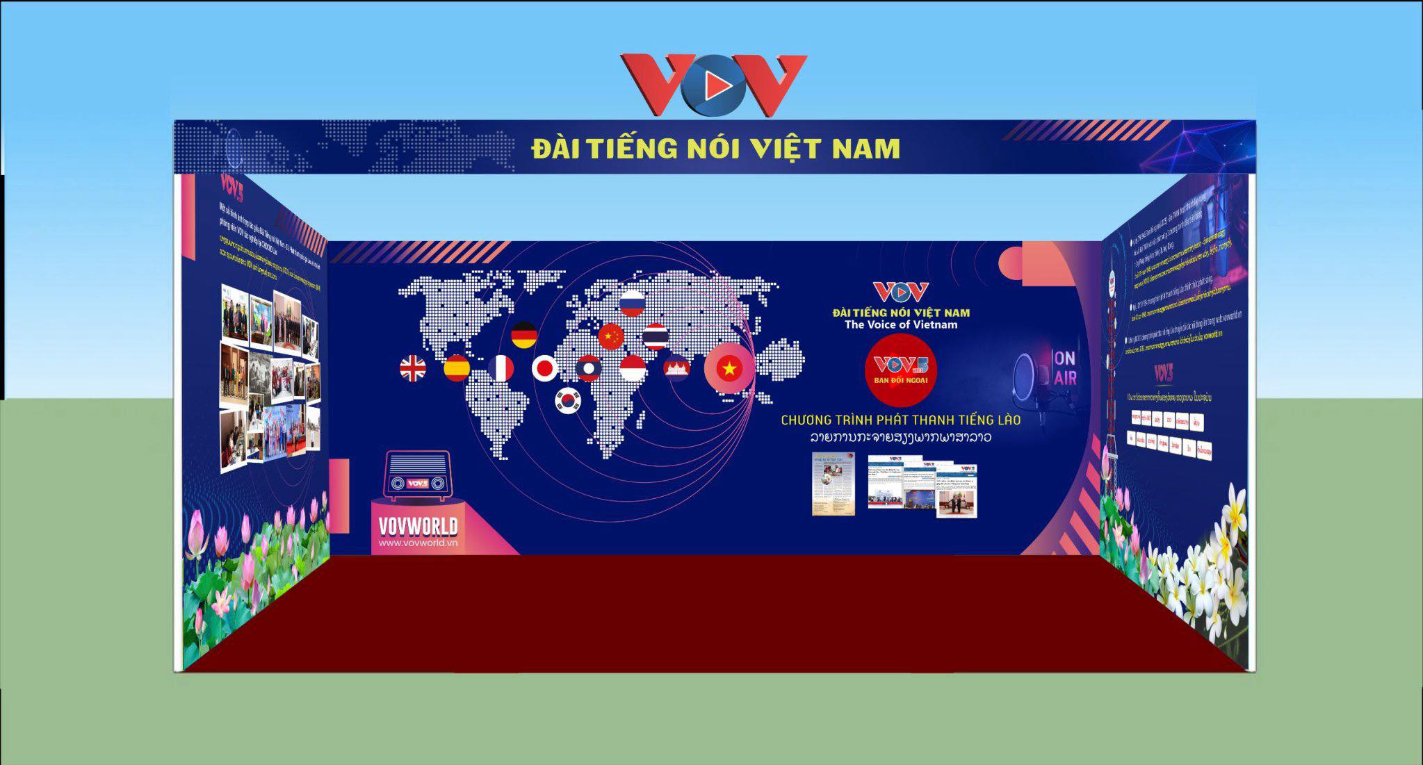 Bà Phó Cẩm Hoa, Trưởng ban Ban Đối ngoại, nhấn mạnh gian trưng bày của Đài Tiếng nói Việt Nam sẽ mang đậm bản sắc của phát thanh đối ngoại. Theo đó, bức tường lớn của gian trưng bày nổi bật hình ảnh logo của Đài Tiếng nói Việt Nam (VOV), logo của Ban Đối ngoại (VOV5), cùng với 13 bước sóng của 13 Chương trình phát thanh đối ngoại, gồm: tiếng Việt, tiếng Lào, tiếng Thái Lan, tiếng Campuchia, tiếng Indonesia, tiếng Anh, tiếng Pháp, tiếng Nga, tiếng Đức, tiếng Tây Ban Nha, tiếng Nhật, tiếng Trung Quốc, tiếng Hàn Quốc và quốc kỳ của 13 quốc gia này. Trên bức tường bên phải của gian trưng bày là hình ảnh cột phát sóng của Đài Tiếng nói Việt Nam cùng những thông tin nổi bật về Chương trình phát thanh tiếng Lào và Ban Đối ngoại của Đài Tiếng nói Việt Nam. Bức tường bên trái là các hình ảnh tác nghiệp của phóng viên Chương trình phát thanh tiếng Lào, phóng viên VOV thường trú tại Lào, cùng những hoạt động hợp tác giữa Đài Tiếng nói Việt Nam với Đài Phát thanh Quốc gia Lào.
