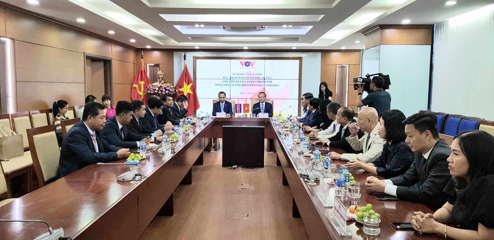 Chiều 24/9, tại Trung tâm Phát thanh Quốc gia, số 58 Quán Sứ, Hà Nội, đoàn đại biểu Bộ Thông tin Campuchia, do Bộ trưởng Neth Pheaktra dẫn đầu, thăm và làm việc với Đài Tiếng nói Việt Nam, nhân dịp đoàn sang Việt Nam tham dự hội nghị Bộ trưởng Bộ thông tin các nước Đông Nam Á (ASEAN) tại thành phố Đà Nẵng.