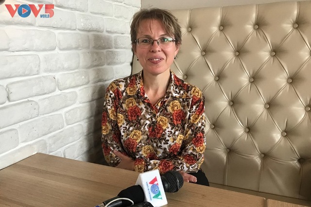 Bà Svetlana Glazunova - giảng viên tiếng Việt ở khoa Quan hệ Quốc tế-Học Viện Ngoại giao Nga trả lời phỏng vấn. |