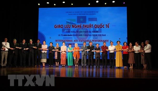 Chào mừng 56 năm thành lập Hiệp hội các quốc gia Đông Nam Á (ASEAN) (1967-2023) và 78 năm Quốc khánh nước Cộng hòa xã hội chủ nghĩa Việt Nam (2/9/1945-2/0/2023), tối qua (30/8), Liên hiệp các tổ chức hữu nghị thành phố Hà Nội phối hợp với Đại sứ quán các nước ASEAN tại Hà Nội tổ chức chương trình Giao lưu nghệ thuật quốc tế.